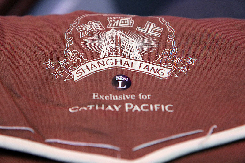 Det er tid til at folde stolen ud i fuld længde og få lidt søvn inden ankomst i Amsterdam. Jeg skifter til den udleverede pyjamas fra Shanghai Tang (som er et stort og meget dyrt mærke i Kina og Hong Kong) på toilettet, og imens laver stewardessen en seng ud af min stol.