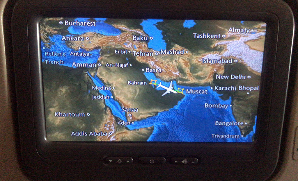 Dagens rejse rejse går da også netop fra Gulf Airs hovedlufthavn i Bahrain til Muscat, hovedstaden i Oman. Det er en flyvetur på 1 time og 40 minutter ombord på en Airbus A320-200.