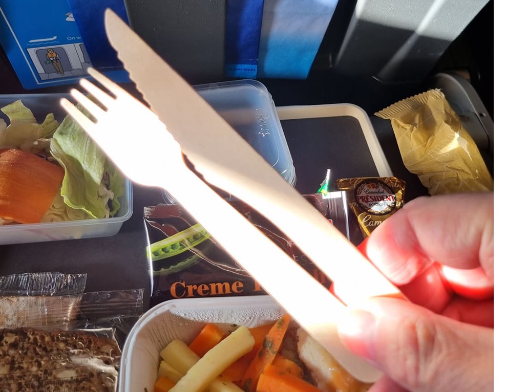 Træbestik og plastkopper er heller ikke just gedigne hjælpemidler at spise med, når man oplever andre selskaber tilbyde rigtigt metalbestik, også på økonomiklassen.