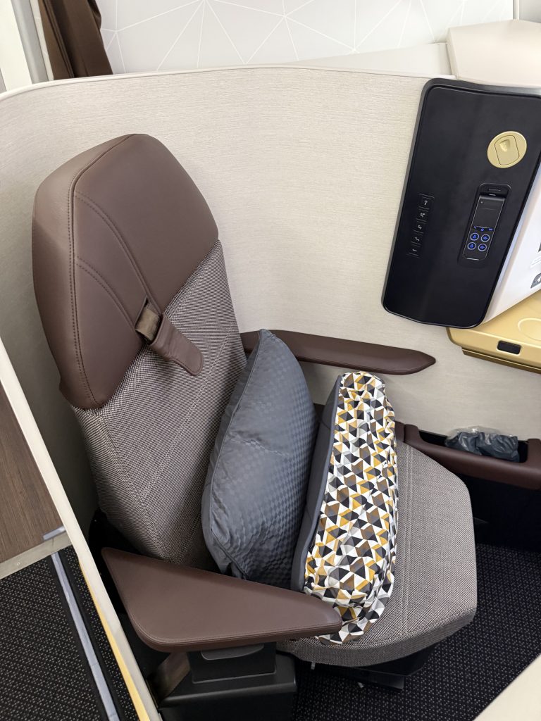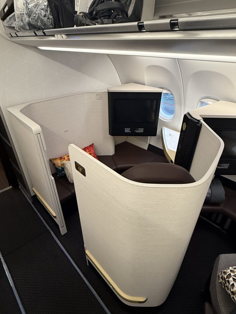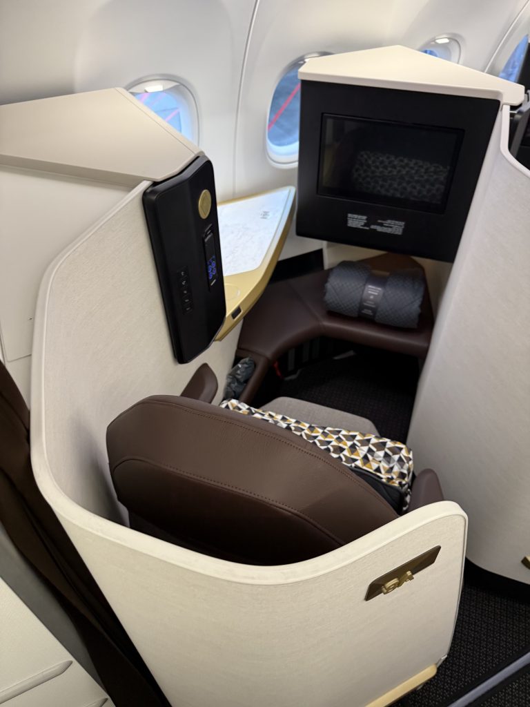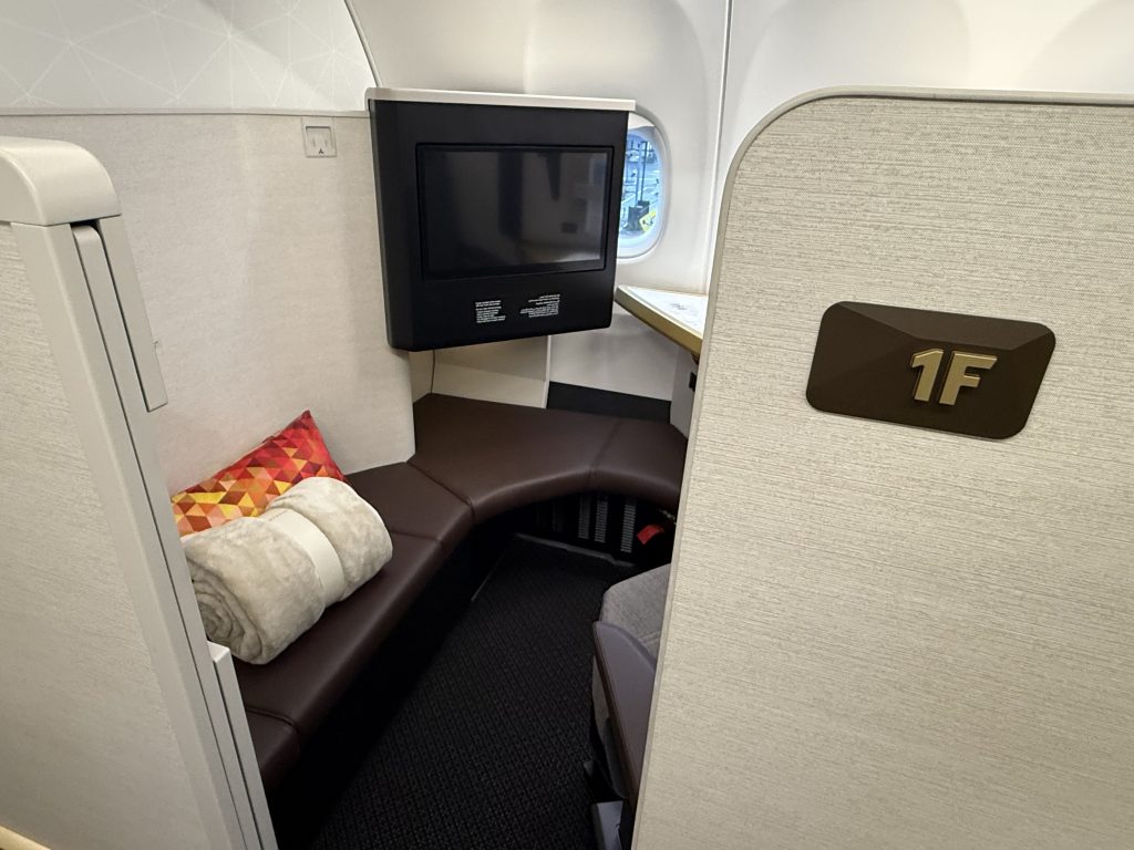 Det hører da også med til historien, at sædet i First Class suiten faktisk er det samme som på Business Class. Forskellen er, at du har mere plads og får en dør, du kan lukke. Det er en ægte suite.