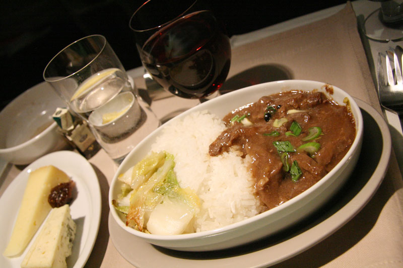 Forinden har jeg indtaget en fire-retters menu på porcelæn med metalbestik og drukket gode vine af rigtigt glas.