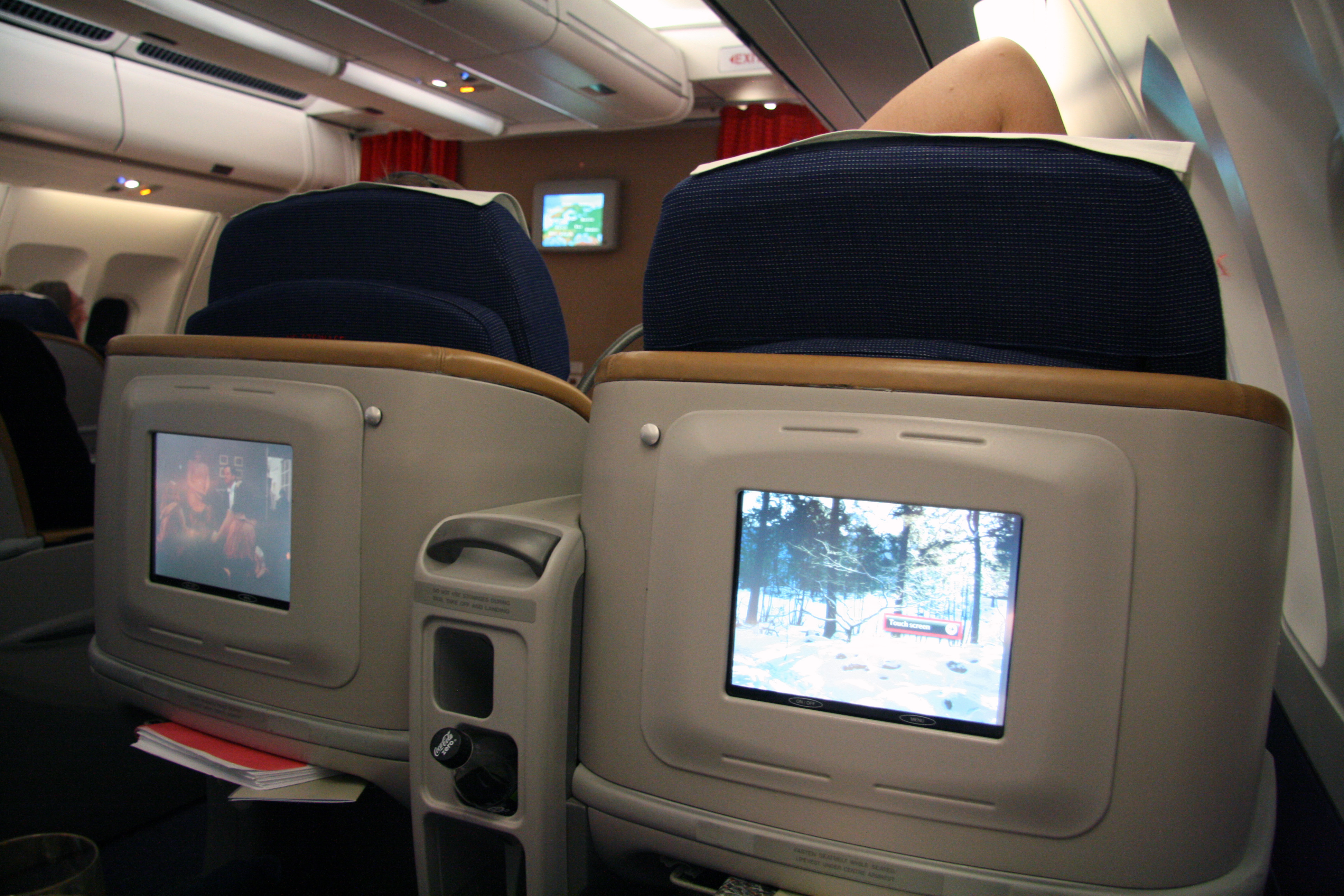 I luften er historien en lidt anden. SAS’ Business Class kabine begynder at have nogle år på bagen, og i en branche hvor grænserne hele tiden rykkes, kan det ses. F.eks. er 10 tommer tv-skærme små efter dagens standard, ”sengen” er ikke helt flad og den begyndende slitage af kabinen kan ses.